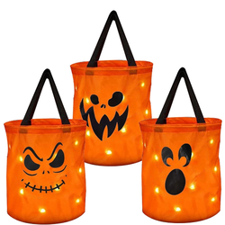Venta caliente bolsa de calabaza luminosa de Halloween Año Nuevo LED tela iluminada decoración precio de fábrica bolsa de mano